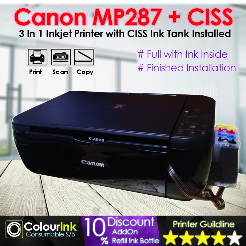 Name canon pixma e510 with ciss tank refiilable price myr339 availability no special discount myr 40 category 3 in 1 inkjet printer product code cn e510 ink toner cartridge model pg 88 blk cl 98 clr.